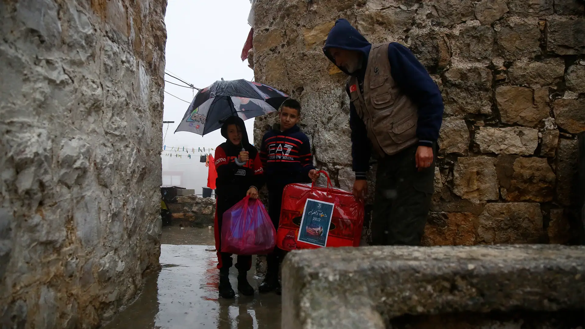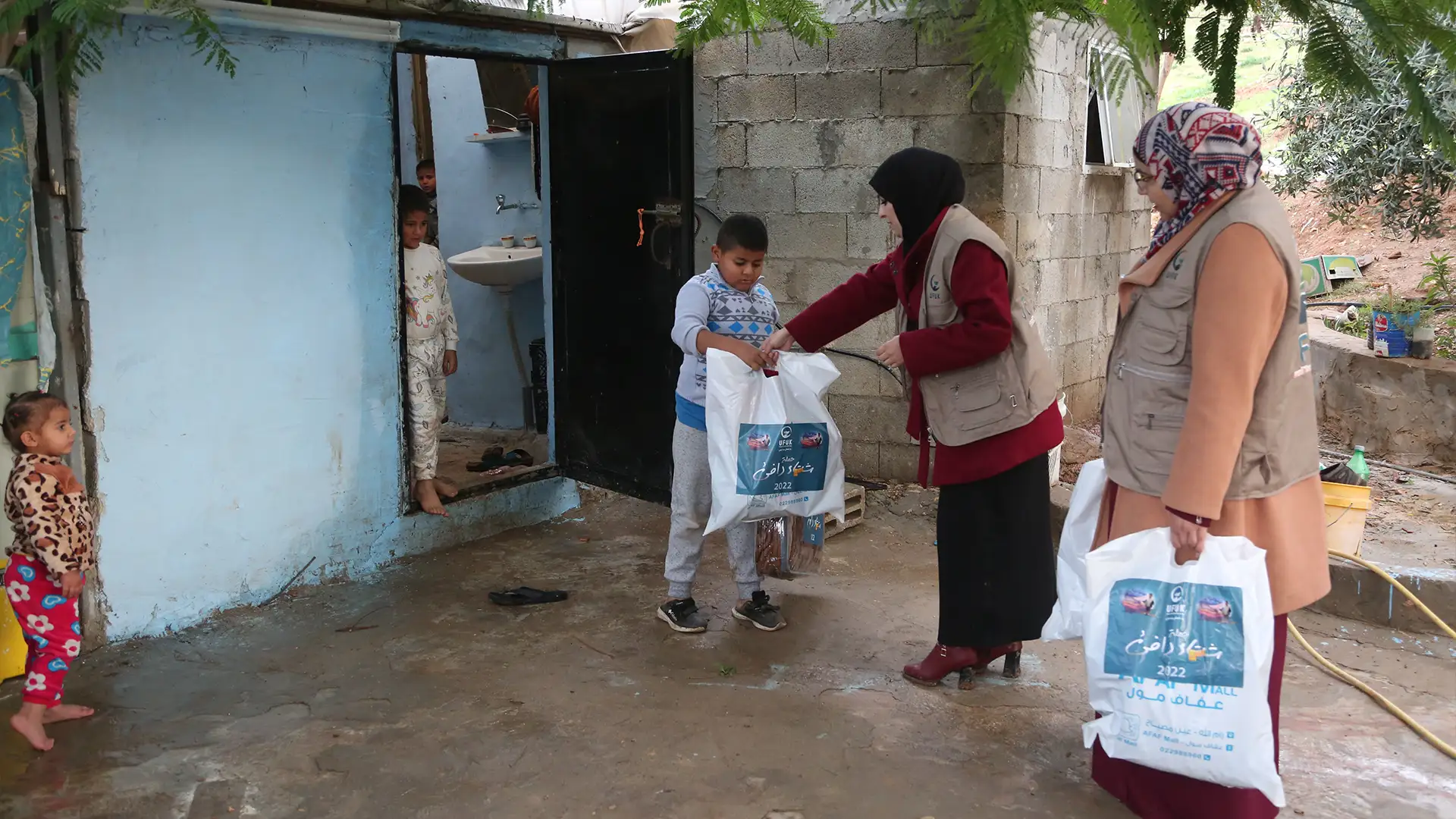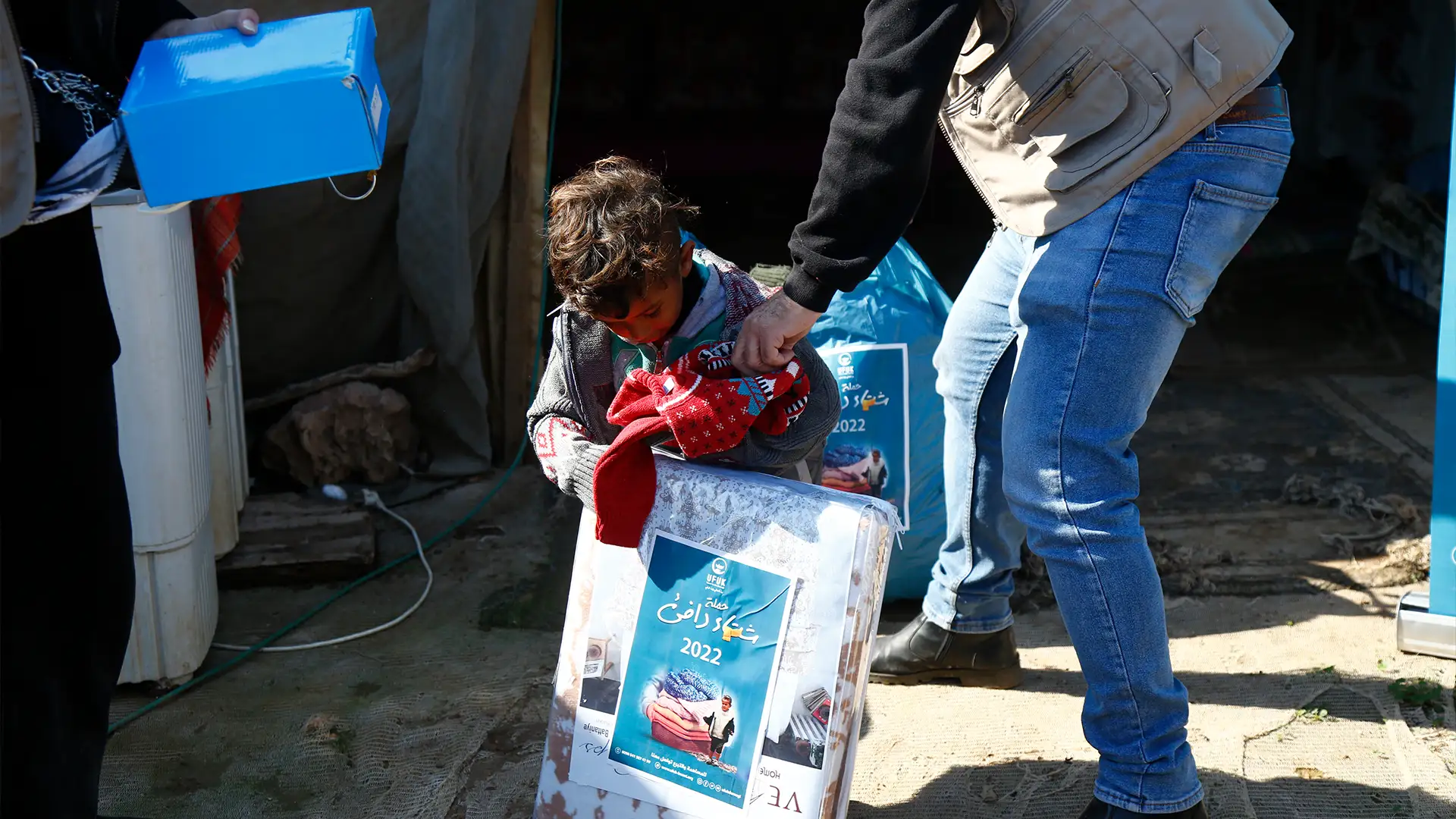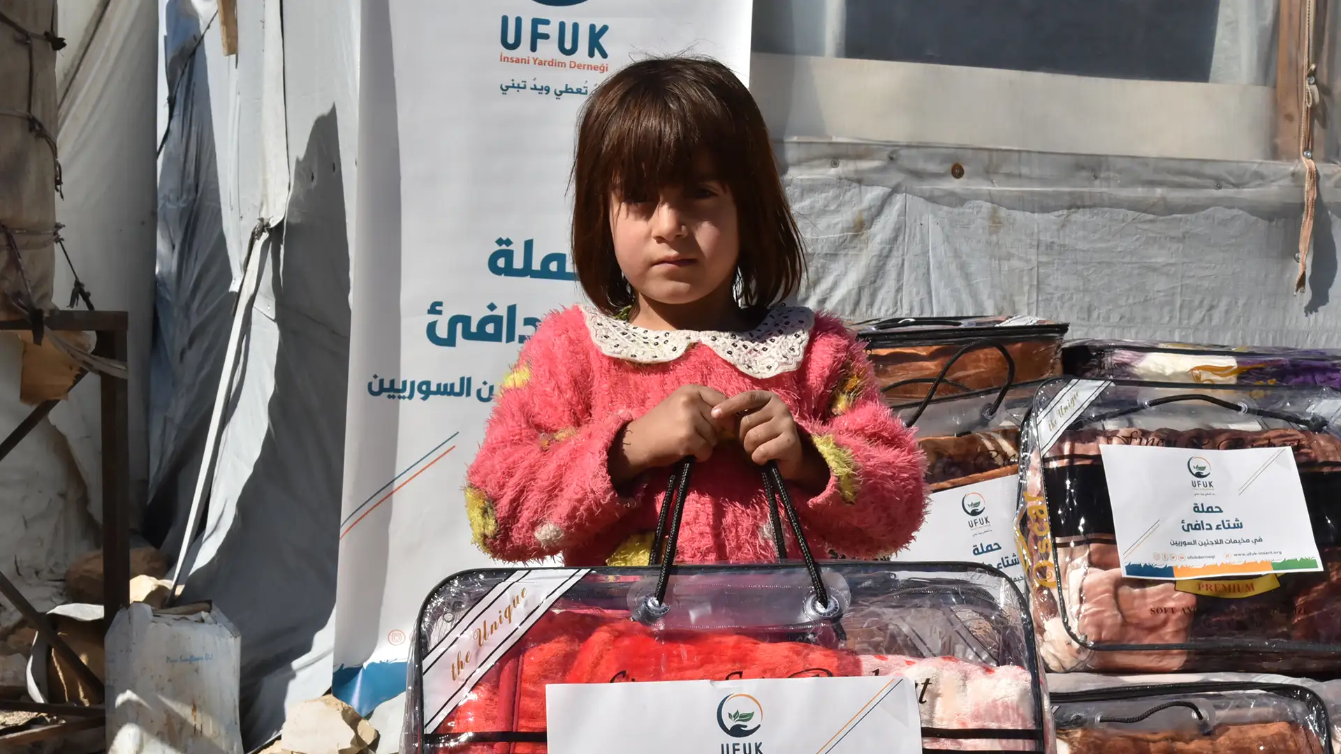 الثاني في الشمال السوري حيث يتم توزيع البطانيات الشتوية على العائلات المحتاجة في المخيمات.