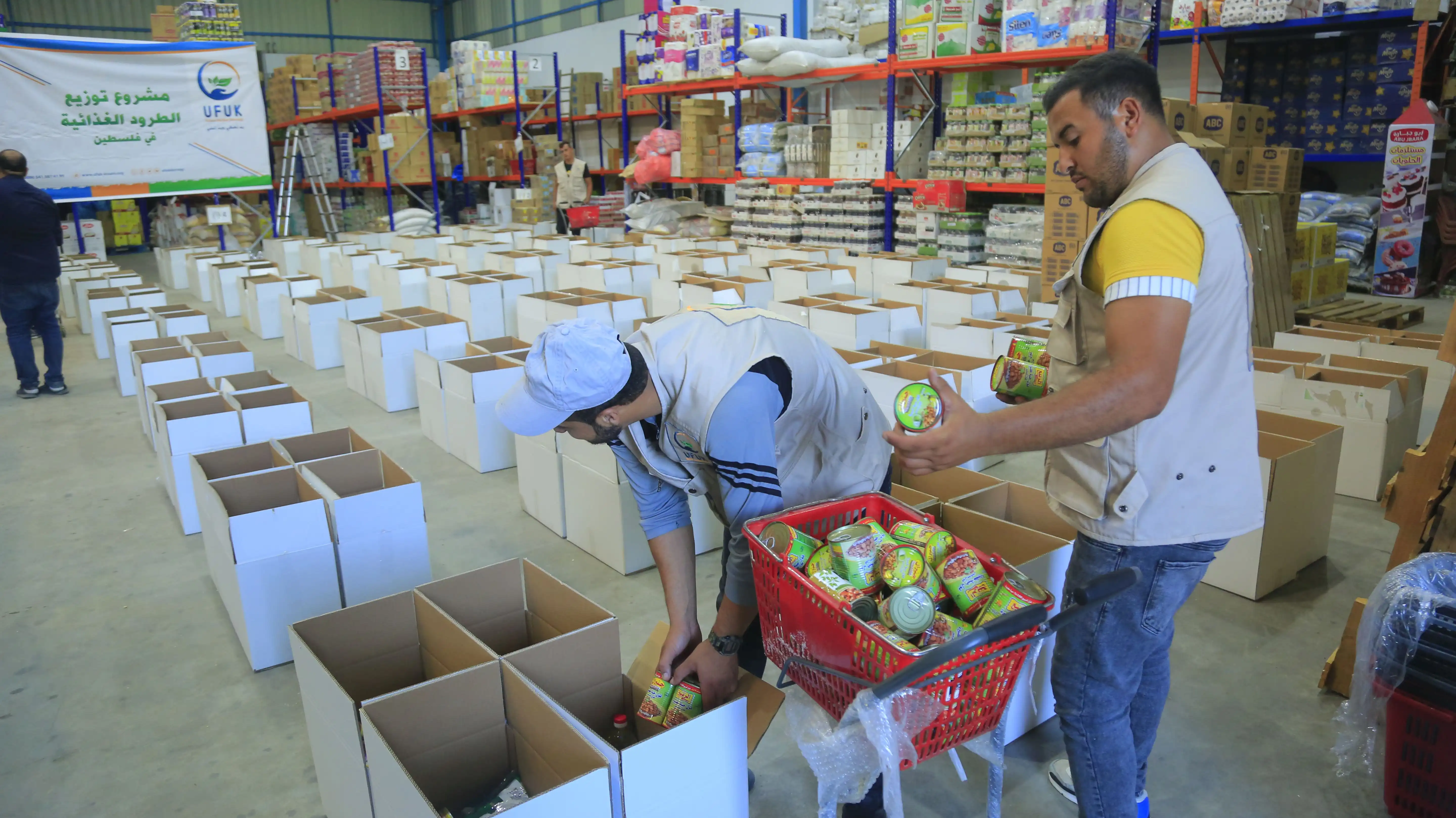 تتضمن الطرود الغذائية مواد متكاملة وعالية القيمة الغذائية تغطي الاحتياجات المعيشية للأسر الفلسطينية.
